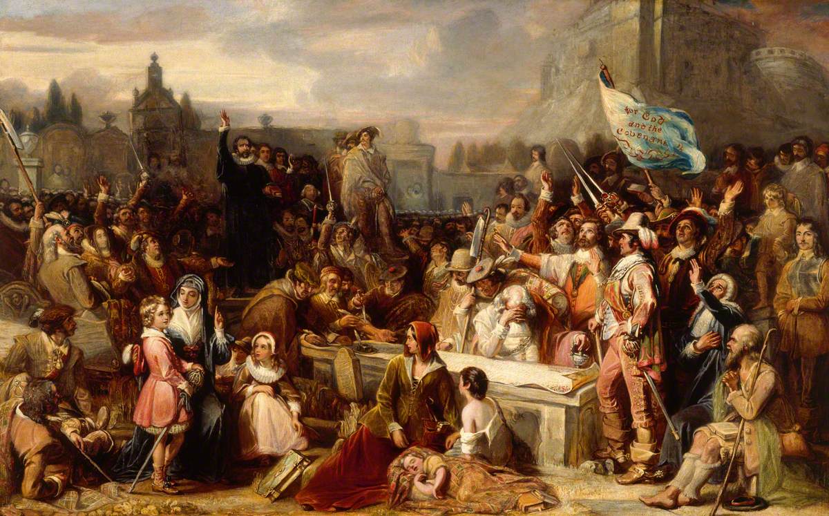 A confissão de fé da Igreja da Escócia, assinada inicialmente por Sua Majestade o Rei e sua casa no ano de Deus de 1580, e depois por pessoas de todas as classes no ano de 1581, por ordem dos senhores do conselho secreto, e atos da assembleia geral, assinada novamente por todos os tipos de pessoas no ano de 1590, por uma nova ordem do conselho, a pedido da assembleia geral, como um pacto geral para a manutenção da verdadeira religião e a pessoa do Rei, e, agora assinado no ano de 1638, por nós nobres, barões, cavalheiros, burgueses, ministros e comuns subscritos, juntamente com nossa resolução e promessas pelas causas após especificadas, para manter a dita verdadeira religião, e a Majestade do Rei, de acordo com a confissão acima mencionada e Atos do Parlamento, o teor do qual segue abaixo.